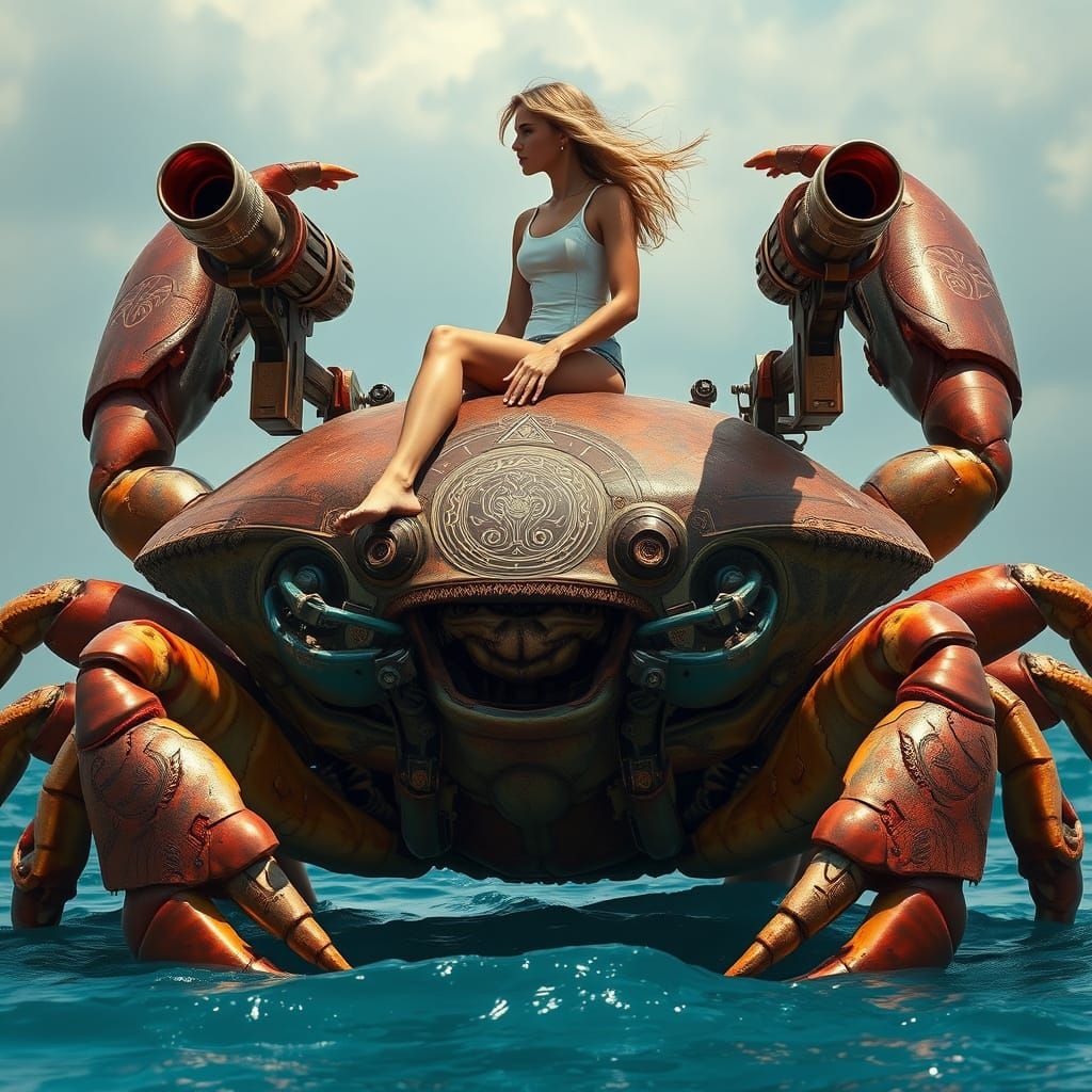 Create your own fantastical scenes of giant crabs and epic adventures with our free AI image generator!