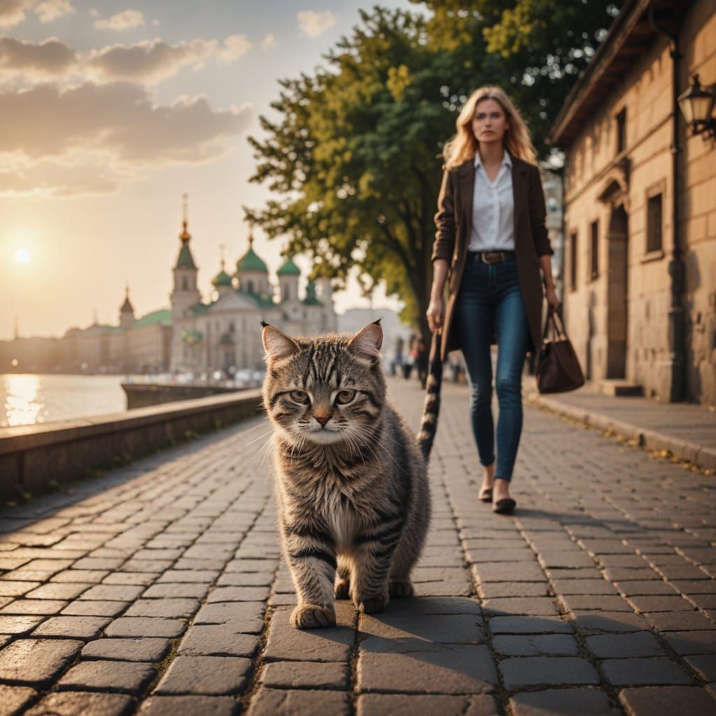 Adorable cat, stylish woman.