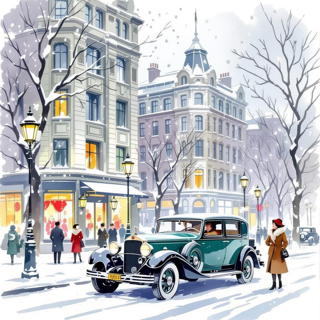 Create your own stunning 1920s-style winter cityscapes with our free AI image generator. It's easy and fun!