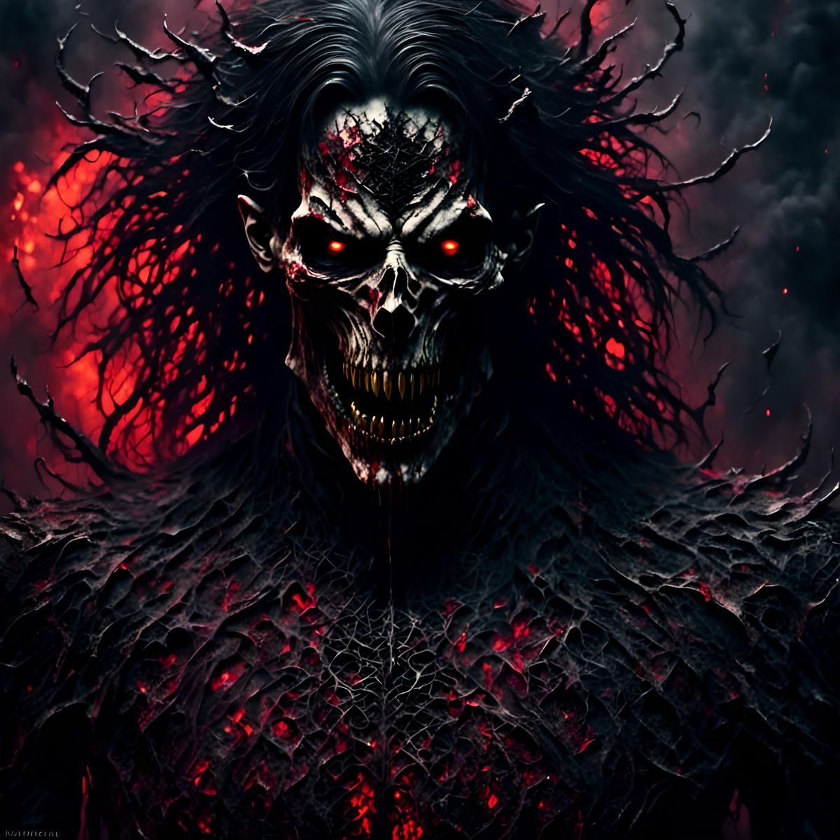 This image shows a sinister, bloody zombie. The style is reminiscent of dark fantasy art.