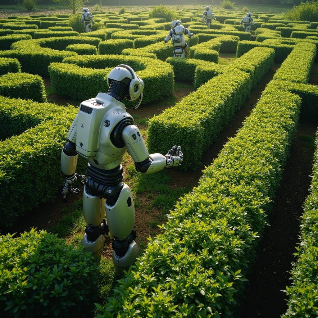 Easily create your own robot gardener and hedge maze images with our free AI generator.