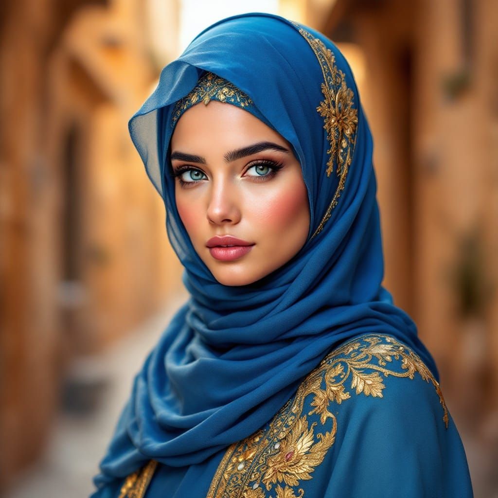 Create your own beautiful digital watercolor portraits of women in hijab, set in exotic locations, with our free AI image generator.