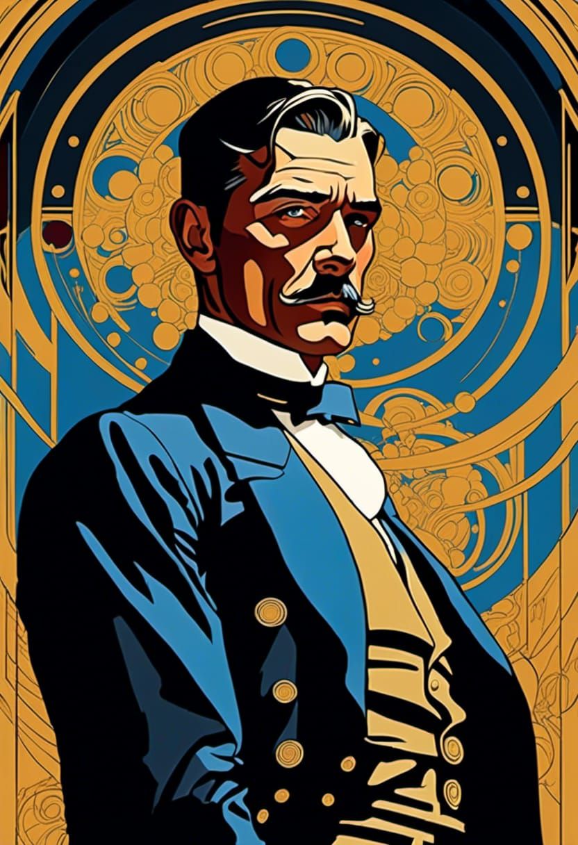 A vibrant digital illustration of Clark Gable in a graphic novel style. This pop art image features screen printing effects, geometric elements, and a triadic color scheme.