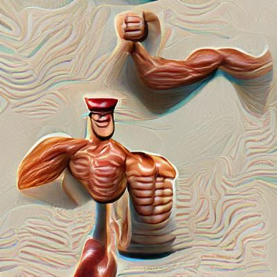 This image shows a muscular man. The AI produced this image from a very brief prompt about a man with muscles.