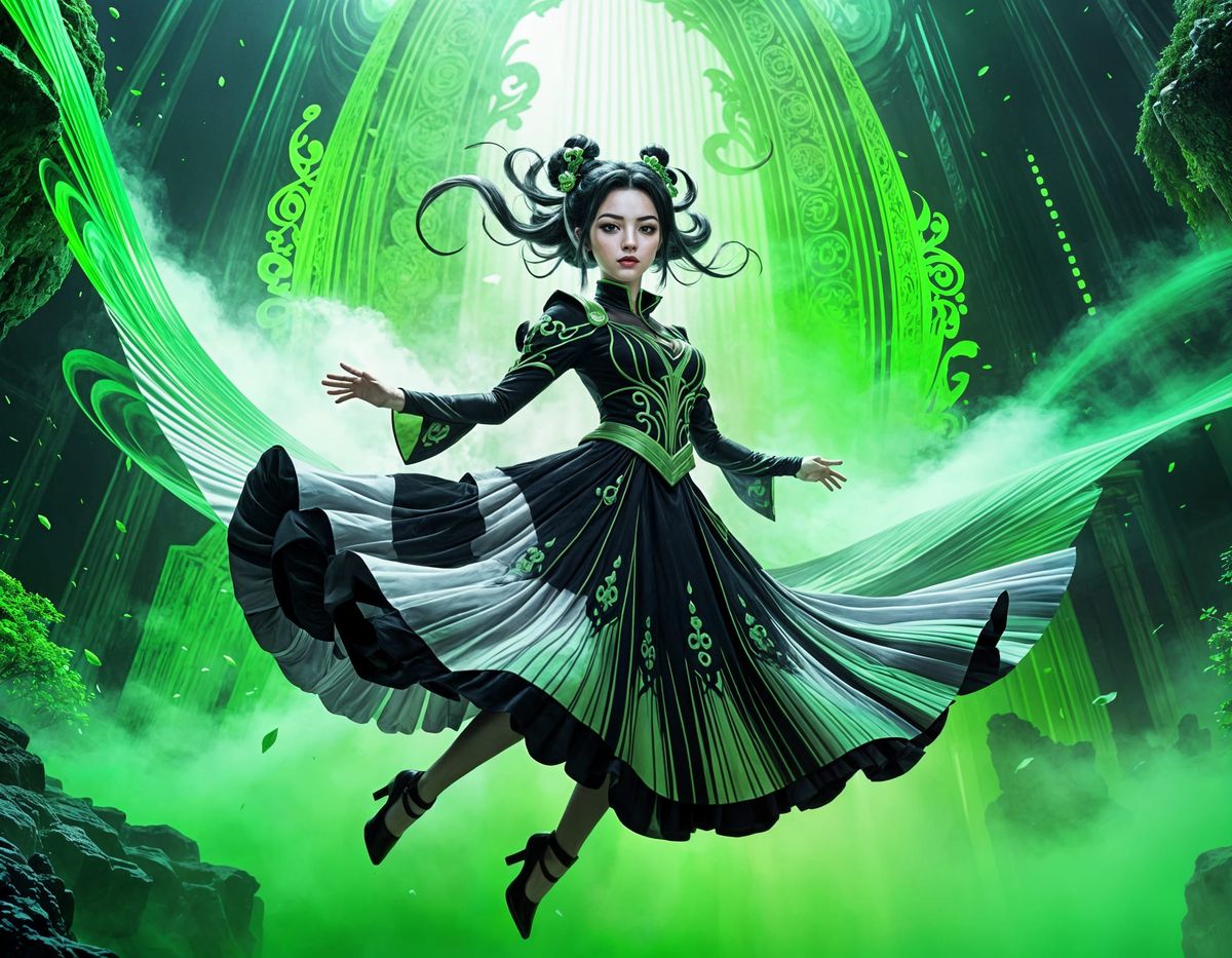 woman floating in green void