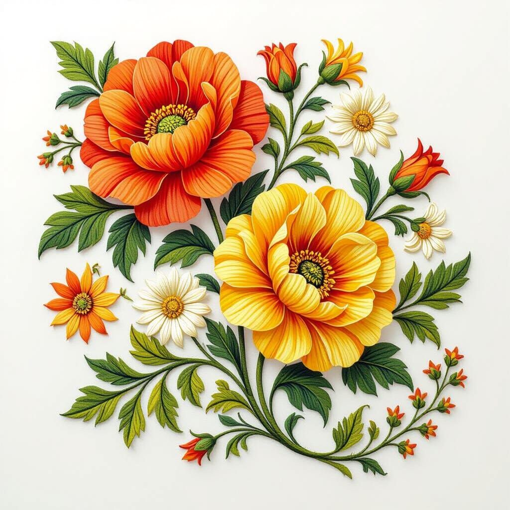 Generate your own unique floral embroidery designs with silk yarn and vibrant colors, for free and easily.