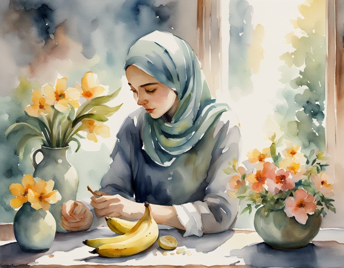This image captures a serene watercolor painting of women, a cat, and flowers. It features soft brushstrokes, warm natural light, and expressive faces, creating a dreamlike and magical atmosphere.
