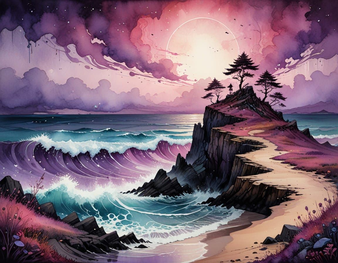 Get inspired by the style of Andy Kehoe and Carne Griffiths. Easily create your own fine-tuned watercolor sea shore scapes with our free AI image generator