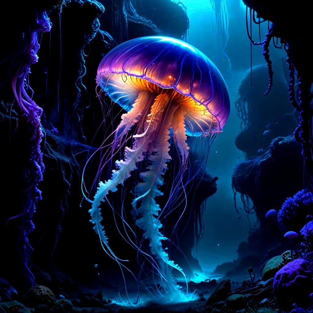 Create your own deep-sea bioluminescent jellyfish images. It's free and easy with our AI image generator.