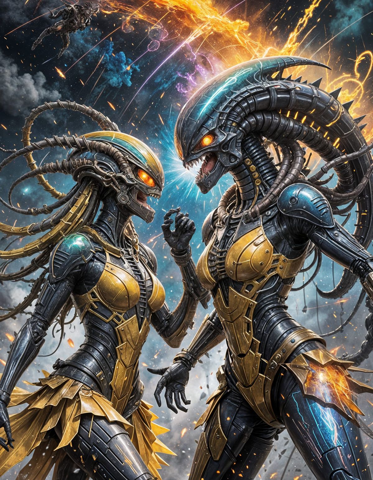 This image showcases a high-energy anime battle with characters clashing in midair. Features glowing powers, dramatic stances, and a massive energy strike.