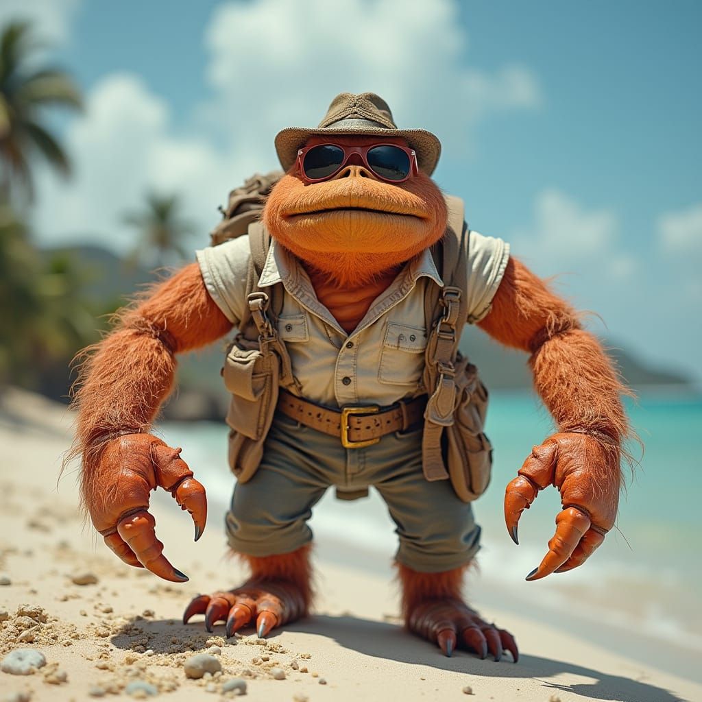 A surreal image of a legendary creature wearing a colorful tourist shirt, blending mythological and tropical elements.