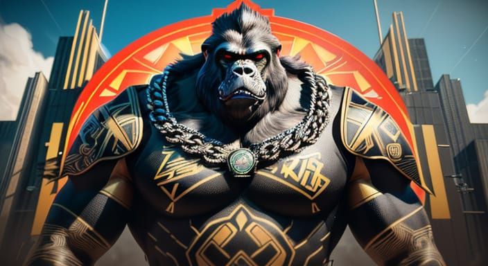 This image features a stylized graffiti portrait of "K dogs" in a King Kong motif, blending pop art and screen print aesthetics with intricate detail and dynamic lighting.