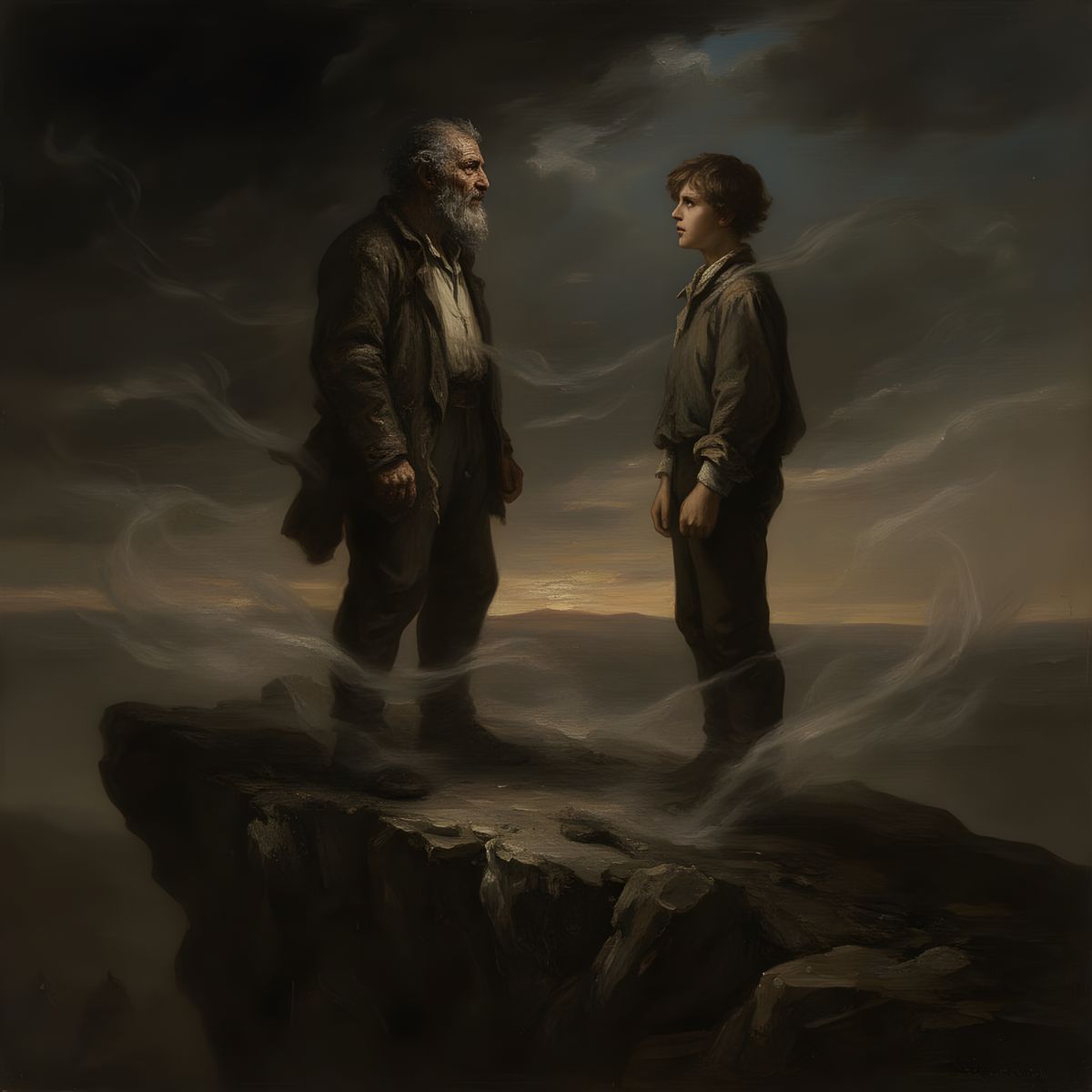 This AI-generated image captures a symbolic clash between old and young, representing a critical turning point where opposing forces meet.