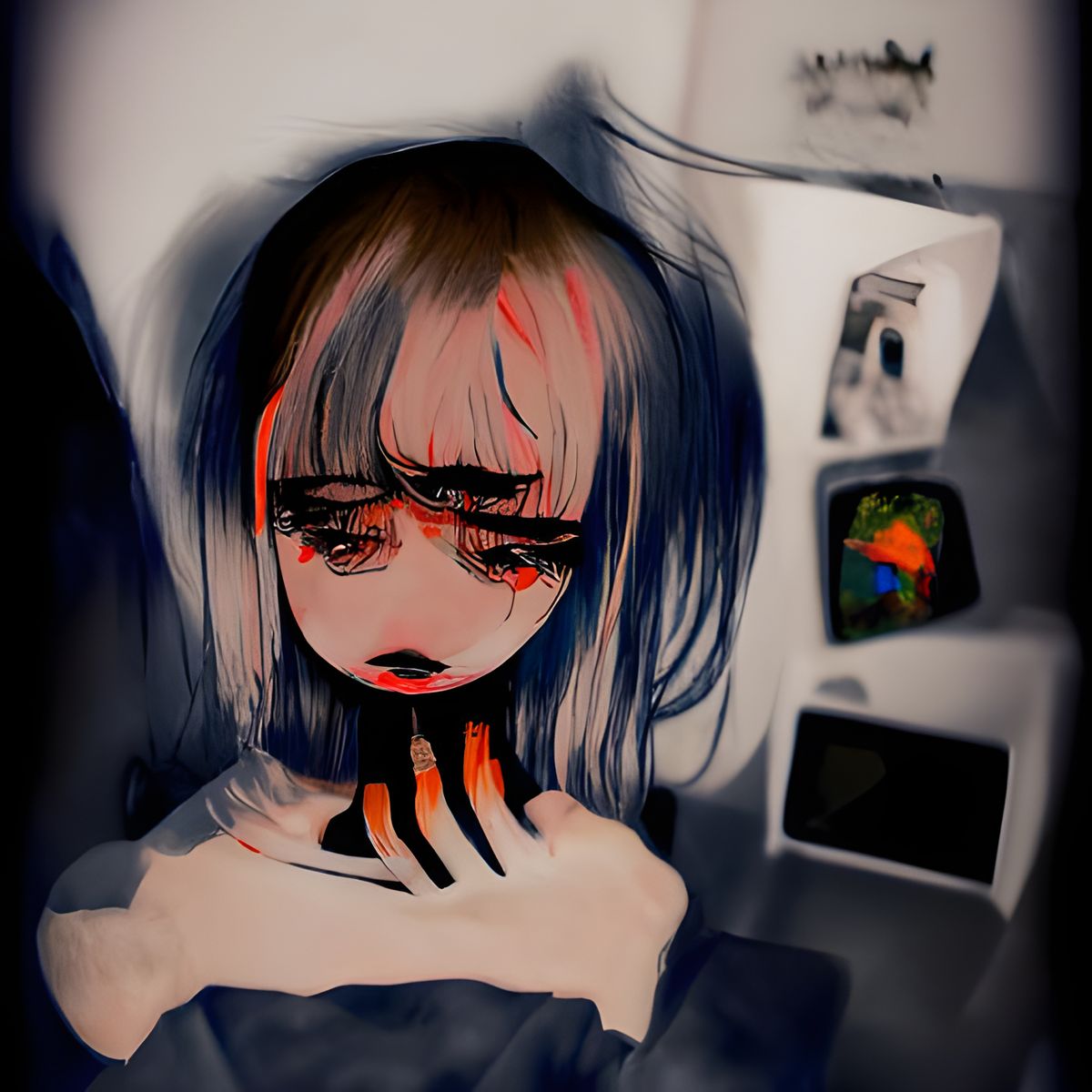 This image depicts feelings of suffering, fear, sadness, and anxiety. The artwork is in the style of anime, capturing the emotional intensity through expressive character design and dramatic composition.
