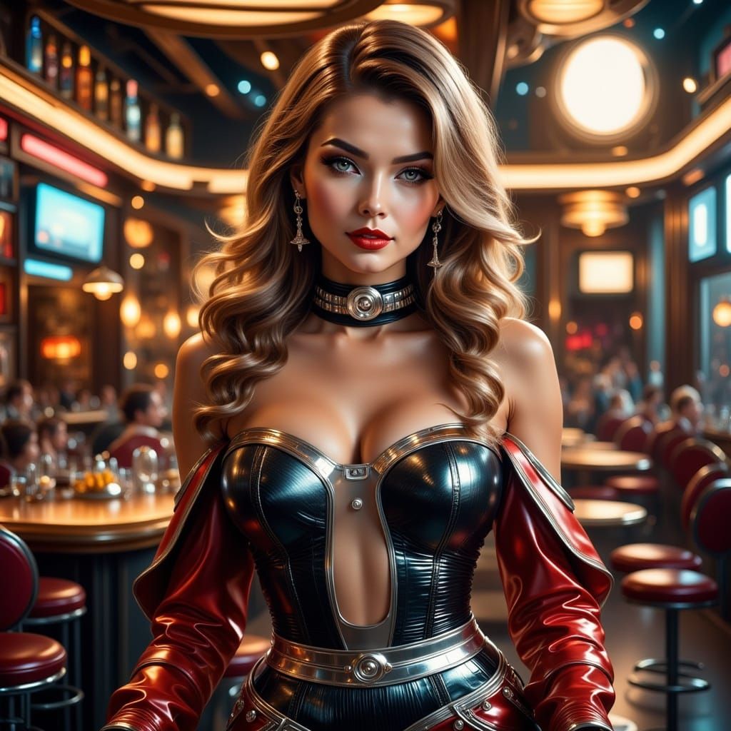This image features a character described as nefarious and mischievous, rendered in a blend of retro and epic science fiction aesthetics.