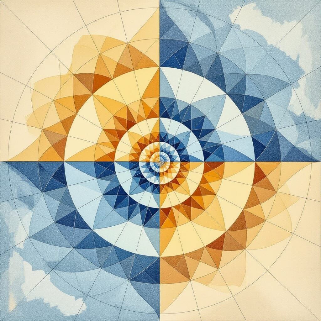 This image features a delicate golden ratio spiral in an architectural blueprint style, using fine ink lines and subtle gradients. It evokes mathematical beauty and universal design principles.