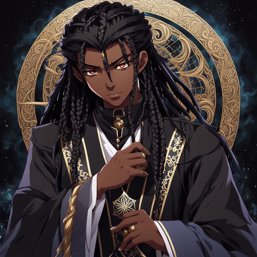 This image shows a teenage wizard with braided hair performing ink magic. The image is rendered in a distinctive anime art style, reminiscent of Japanese manga and key visuals.
