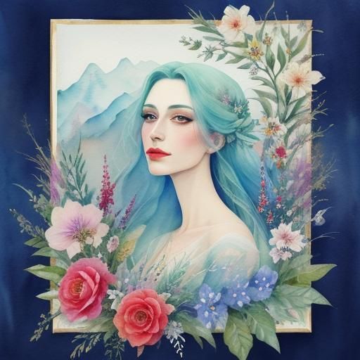 This image showcases a mesmerizing floral arrangement in a unique blend of watercolor and impasto techniques, characterized by its dreamy, vibrant, and expressive style.