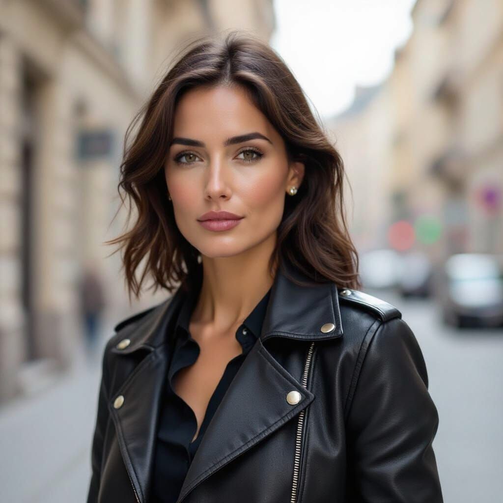 A striking image of an intelligent, attractive detective in a leather trench coat, searching for truth in a rain-slicked city at night. Cinematic lighting and vivid colors create a neo-noir atmosphere.