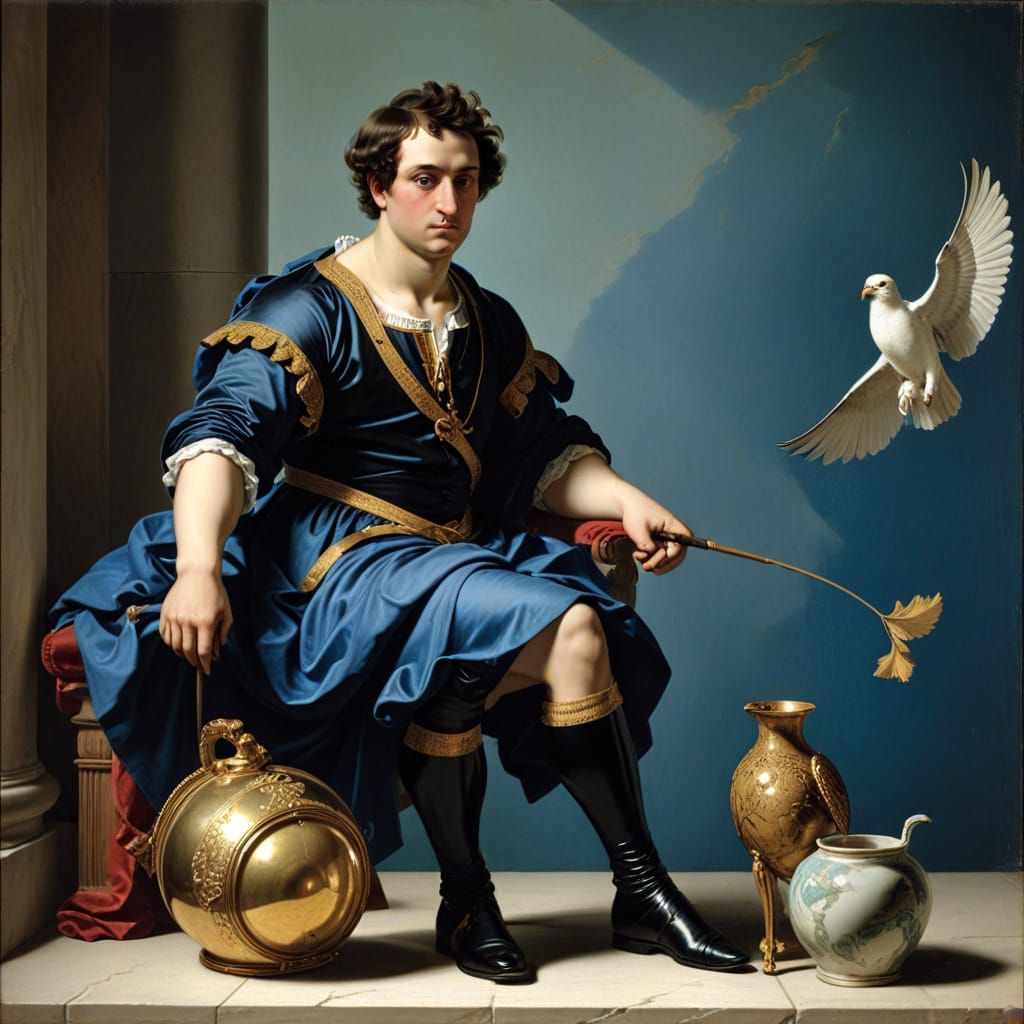 This image shows a man reading a book in a neorealist style. The composition is in an S shape, with soft lighting and muted colors creating a melancholic tone, as a detailed figurative art piece.