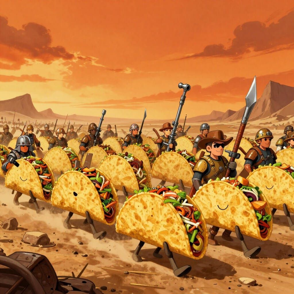 Ready for a fiesta of fun? Easily generate your own unique taco army images with our free AI tool.
