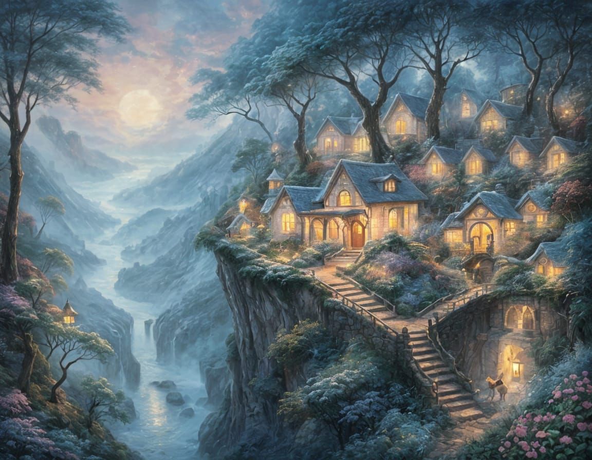 Easily generate unique foggy forest images, ancient huts, and whimsical landscapes for free with our AI tool.