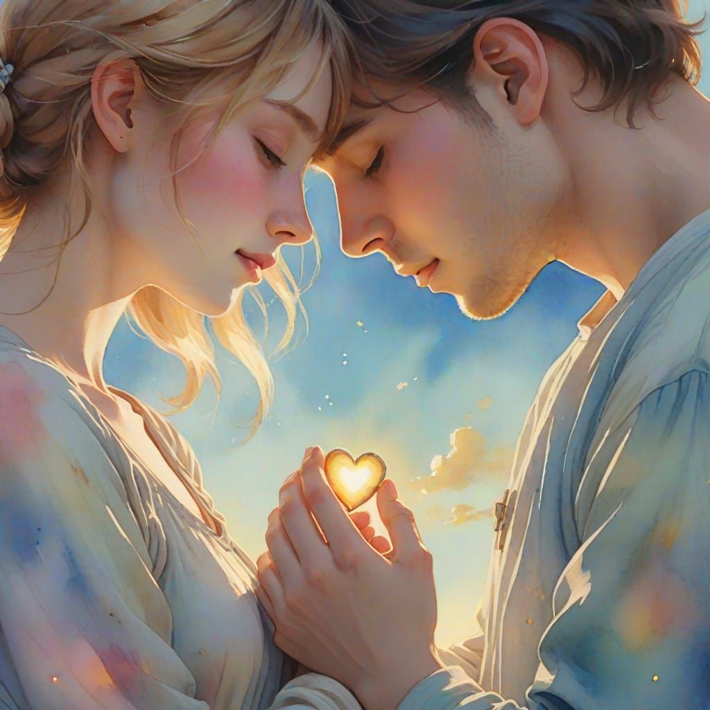 A heartwarming image showing one person holding another close. The picture conveys a sense of deep affection and connection using dreamy watercolor techniques. Soft brushstrokes and pastel colors enhance the serene atmosphere.