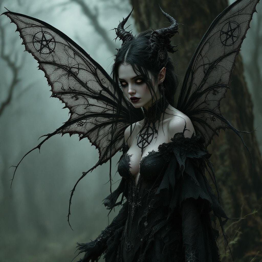 Easily generate unique vampire fairy art with pentagram designs on the wings. It's free and easy!