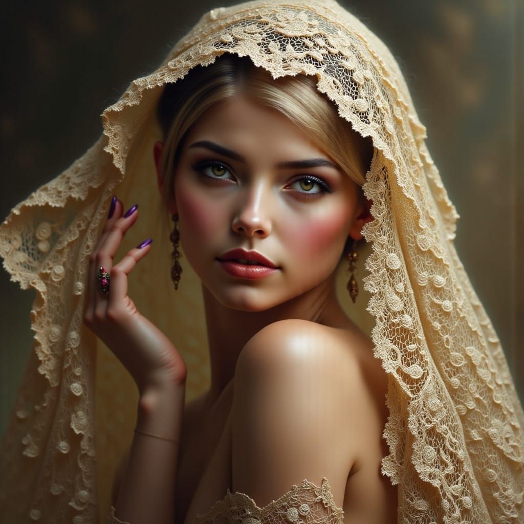 Easily create your own images of beautiful women wearing lace veils with our free AI generator.
