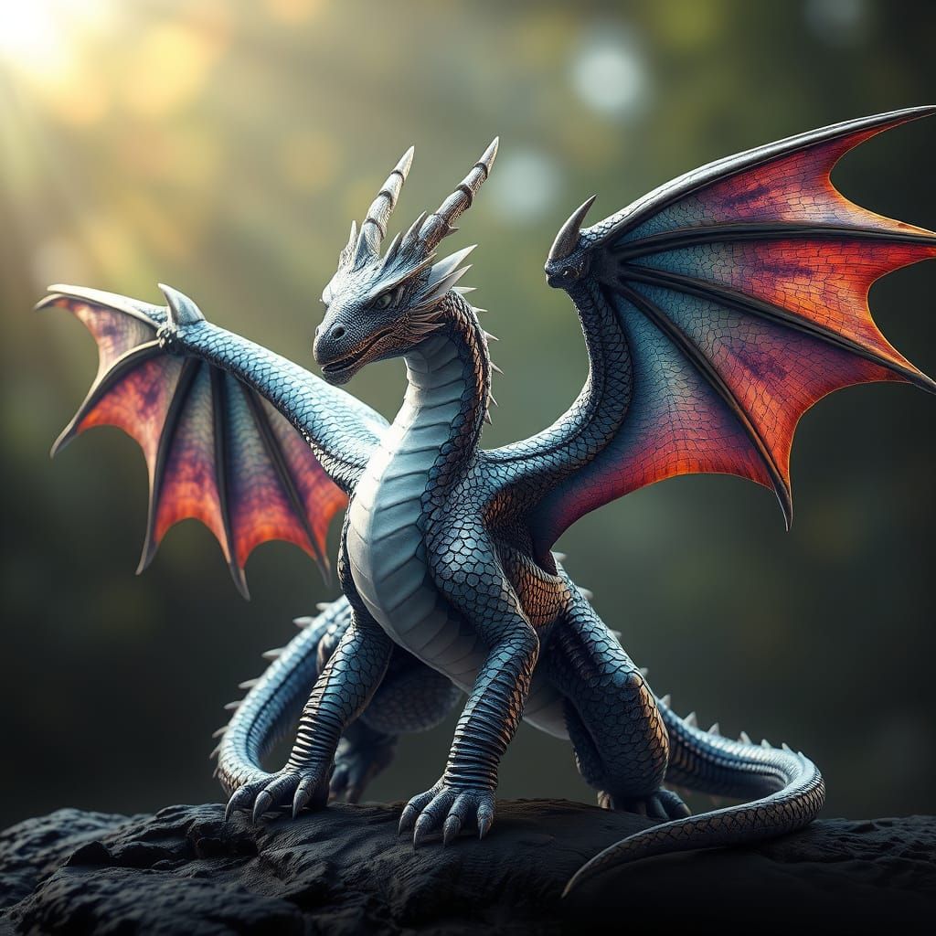 A mesmerizing, one-of-a-kind dragon. The dragon's intricately detailed scales and sprawling wings are brought to life using Smolko's signature crosshatch and scribble technique, creating a captivating textured appearance. The background features an enchanting bokeh effect, drawing the viewer into the ...