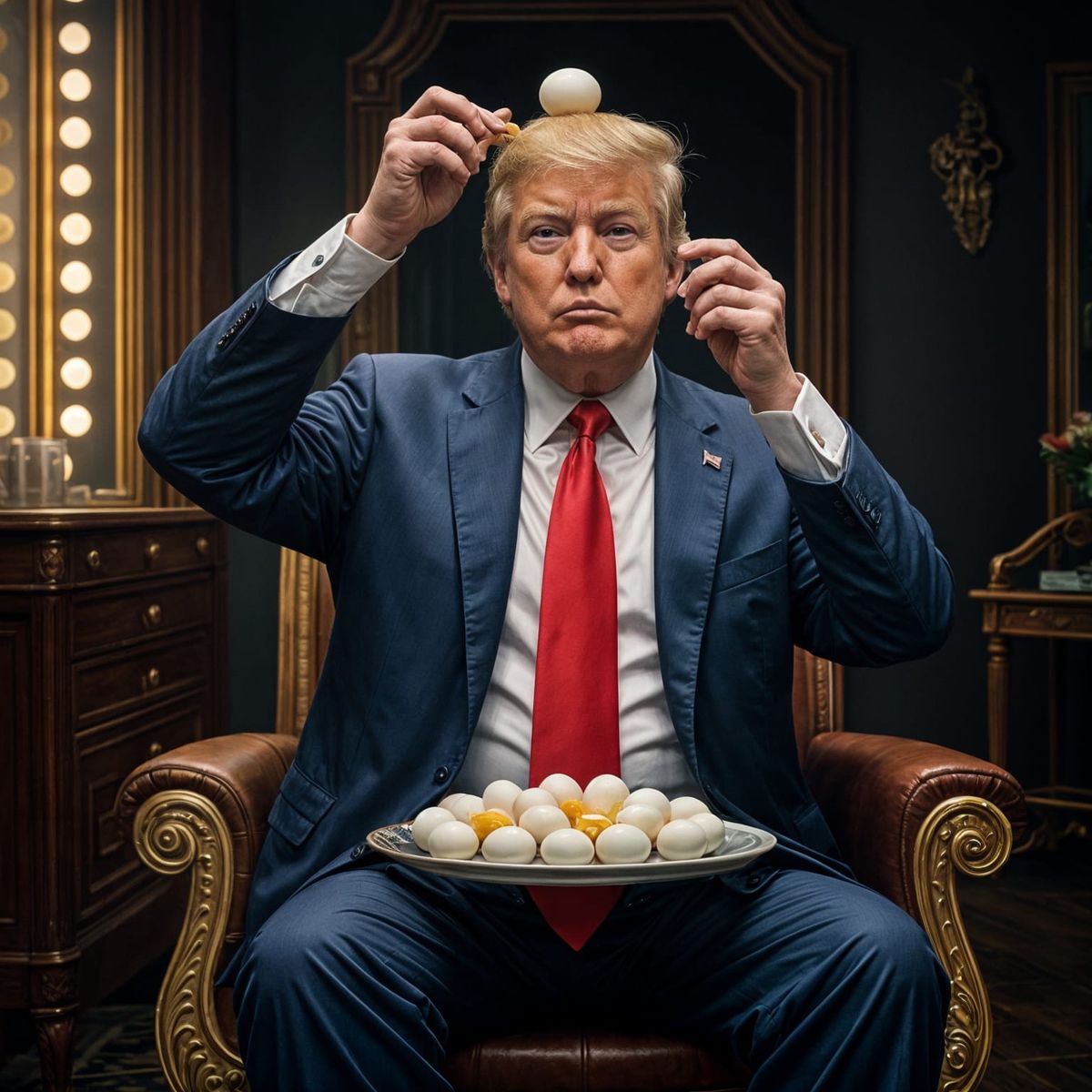Get creative with our free AI image generator. Easily make your own egg balancing masterpieces like this Donald Trump meme.