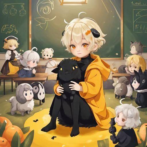Person 3: a little sheep girl with short fluffy white hair she has sheep ears