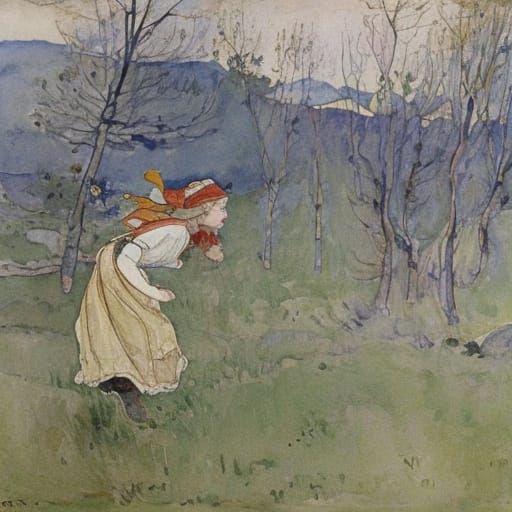 This image depicts the resurrection of Eeyore's daughter in a watercolor style. It evokes a blend of illustrative charm and expressive portraiture reminiscent of early 20th-century art.