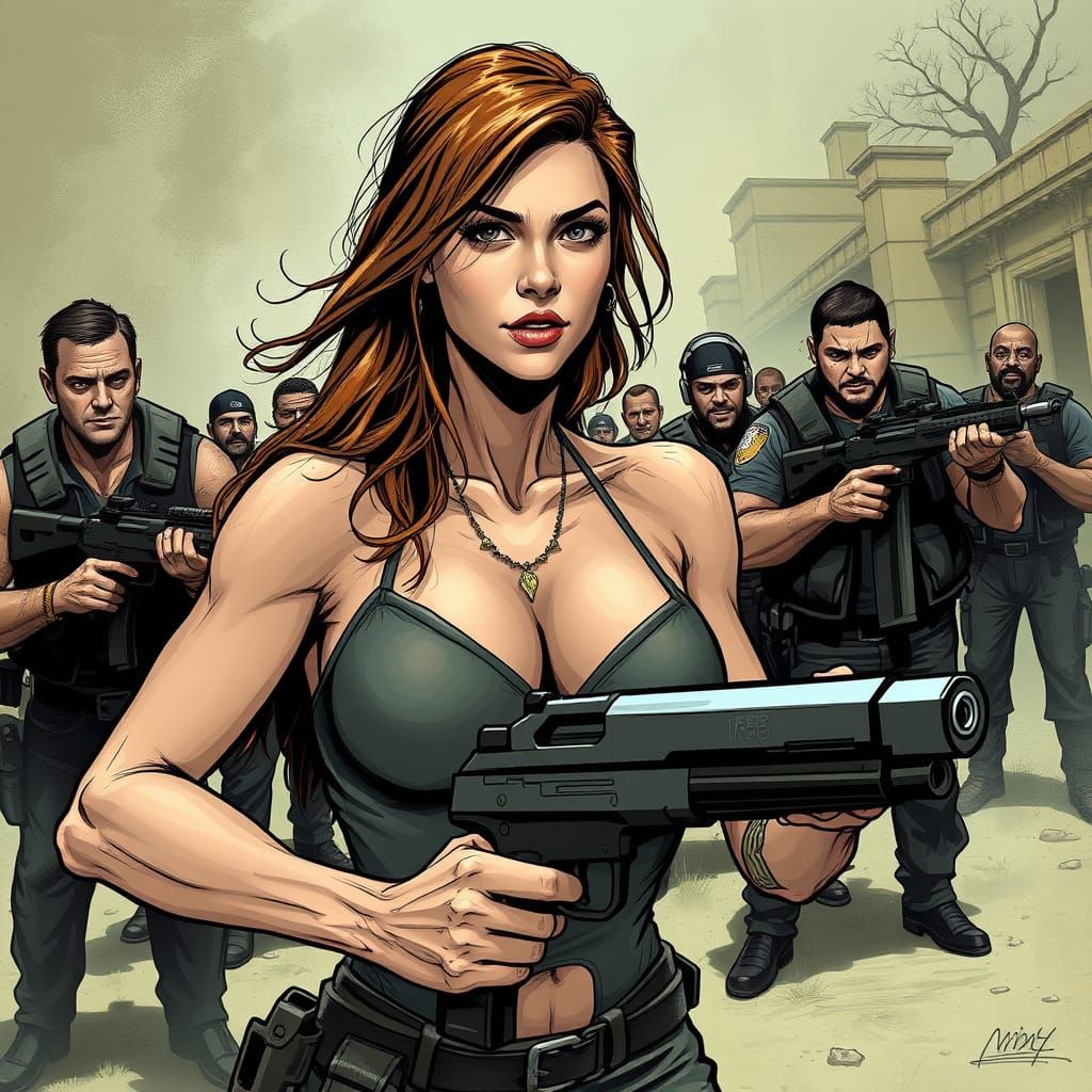 A digital image showing a shirtless woman. The scene conveys an atmosphere of tension, with underlying themes of confidence and vulnerability.