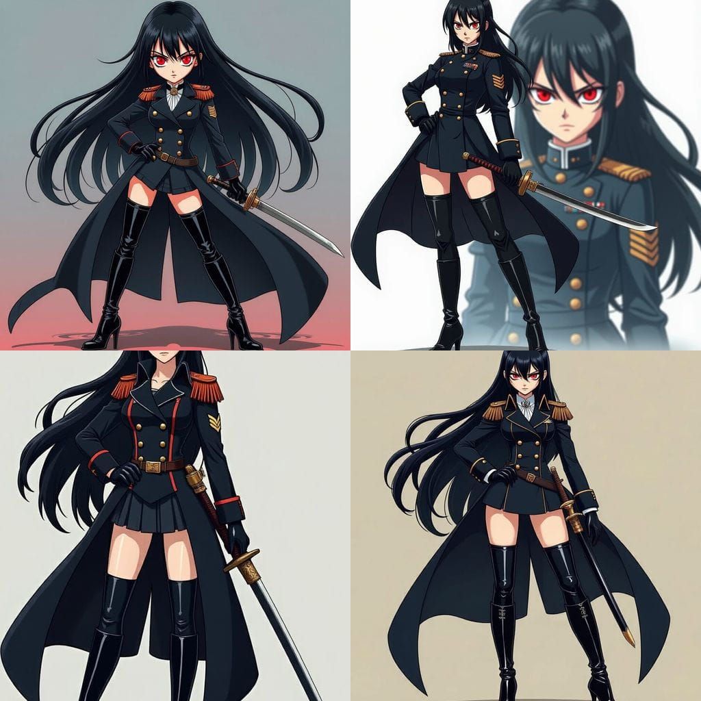 Generate unique anime characters, like admirals with swords and red eyes. Free and easy AI image creation.