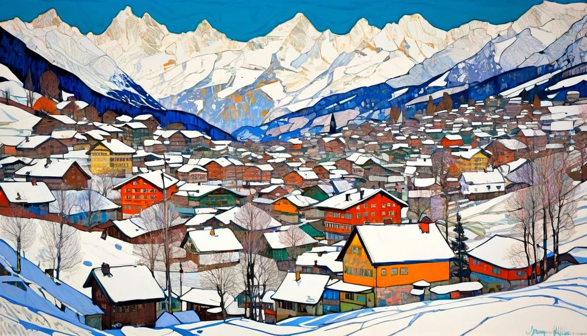 Generate your own stunning winter village images in the Swiss Alps with our easy-to-use AI tool. Free to try!
