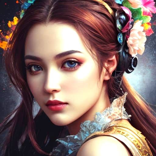 Masterpiece of event occidental girl beauty winners tricky Hyperrealistic, splash art, concept art, mid shot, intricately detailed, color depth, dramatic, 2/3 face angle, side light, colorful background