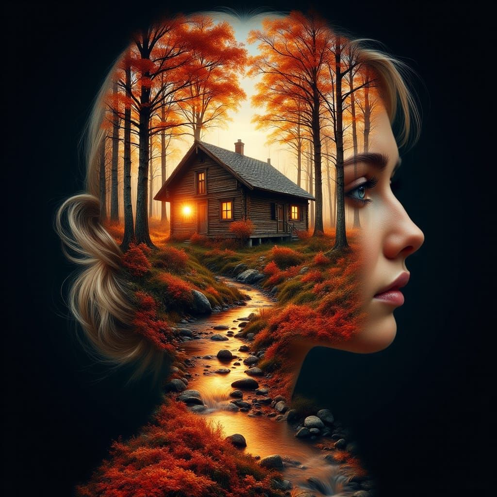 Fantastic silhouette style duble exposure. The balck background is excellent