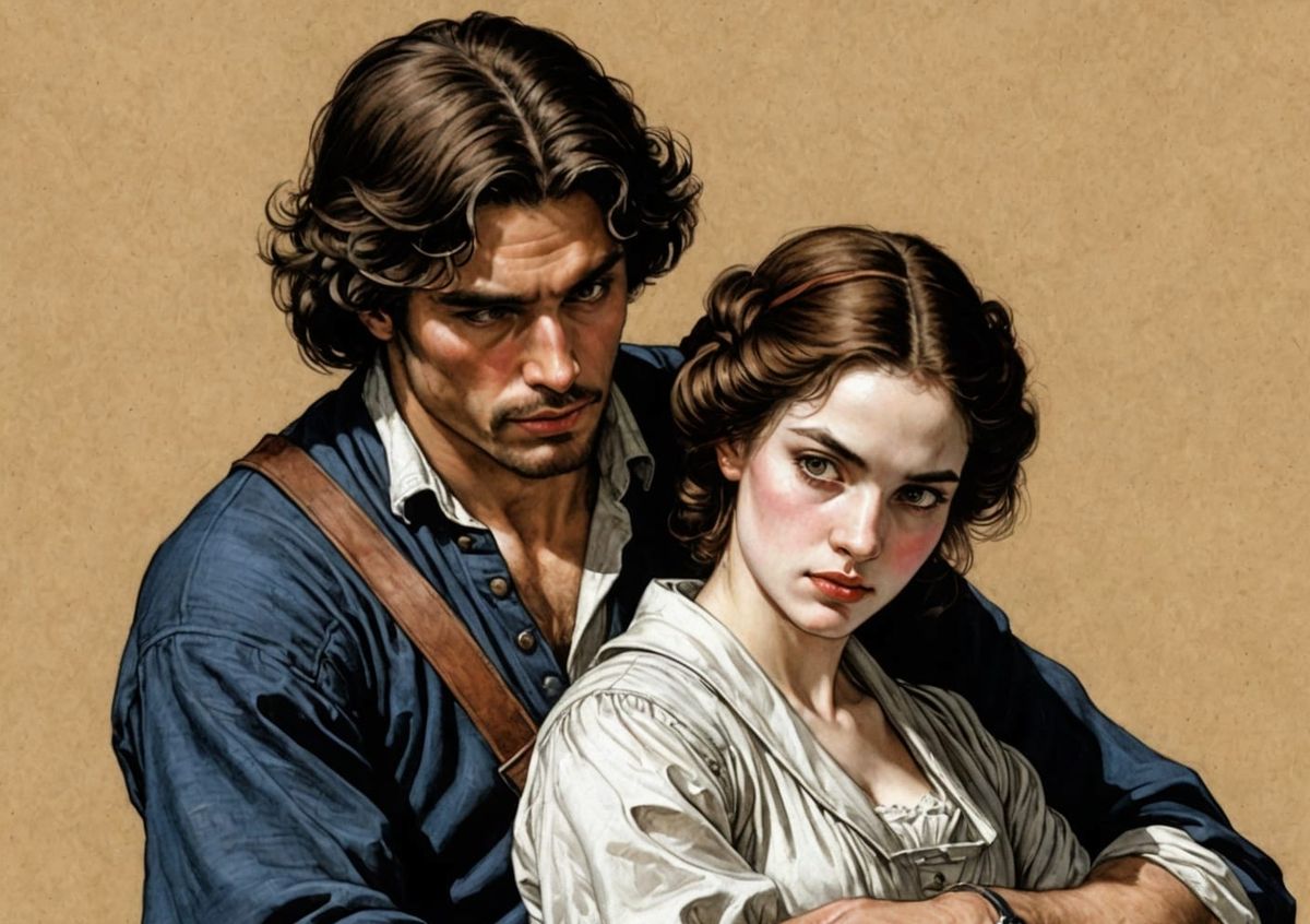 Award-winning extremely realistic pen & pencil cross-hatched drawing in a mixture of the styles of Vallejo, Franzetta, Gentileschi, with anime influence on the eyes and the fine details in pen of a grim but beautiful, athletic, woman with tightly curled rich-brown hair all the way down to her knees, ...