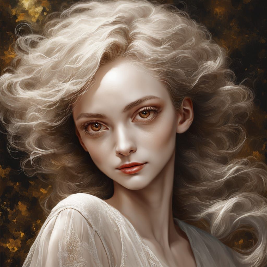 This image is a stunning, hyper-realistic portrait of a young black girl with a gentle smile and captivating dark brown eyes, rendered in exquisite detail with oil painting-inspired colors and softbox lighting.
