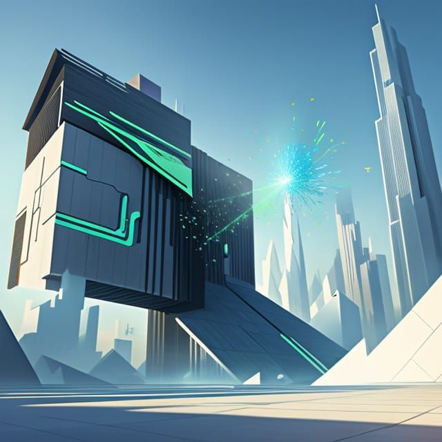This image showcases a mesmerizing blend of architecture and glitch art, featuring a vibrant, glowing aura and blooming details. The piece combines organic and digital elements in a striking visual display.