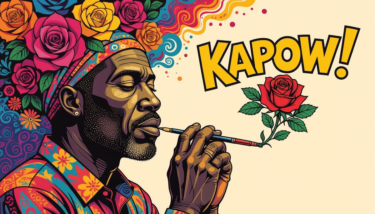 A vibrant ink drawing of roses in a maximalist surrealist style. The artwork features a rich color palette and bold composition.