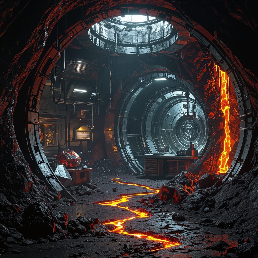 Design unique underground villain lairs, mixing metal, gems, dirt, and magma. Free and easy AI image generation.