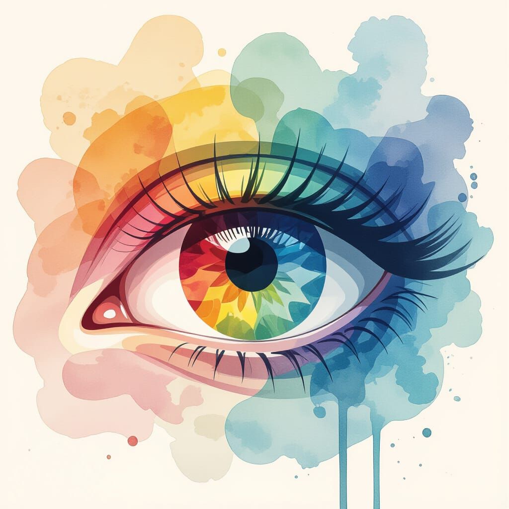 A vivid image of an eye in an abstract watercolour style. This digital illustration uses a modern aesthetic to create a striking and unique design.