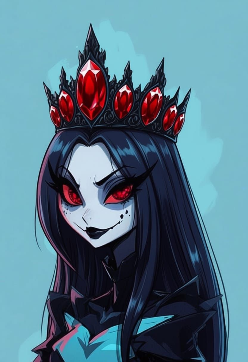 This image features a Hazbin Hotel character rendered in a vibrant cartoon style with bold, thick linework and cel-shading. The simple background keeps the focus on the character.