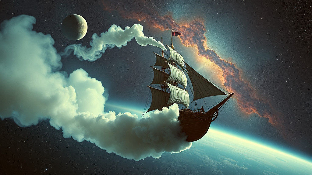 Create your own surreal retro sci-fi images of pirate ships in space. It's free and easy!
