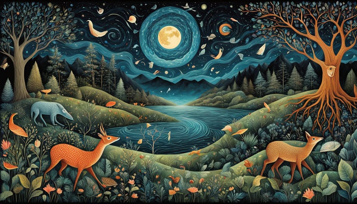 This vibrant digital artwork is a mesmerizing collage of glowing creatures, blending nature and cosmic elements in a dynamic composition that urges viewers to embrace change and authenticity.