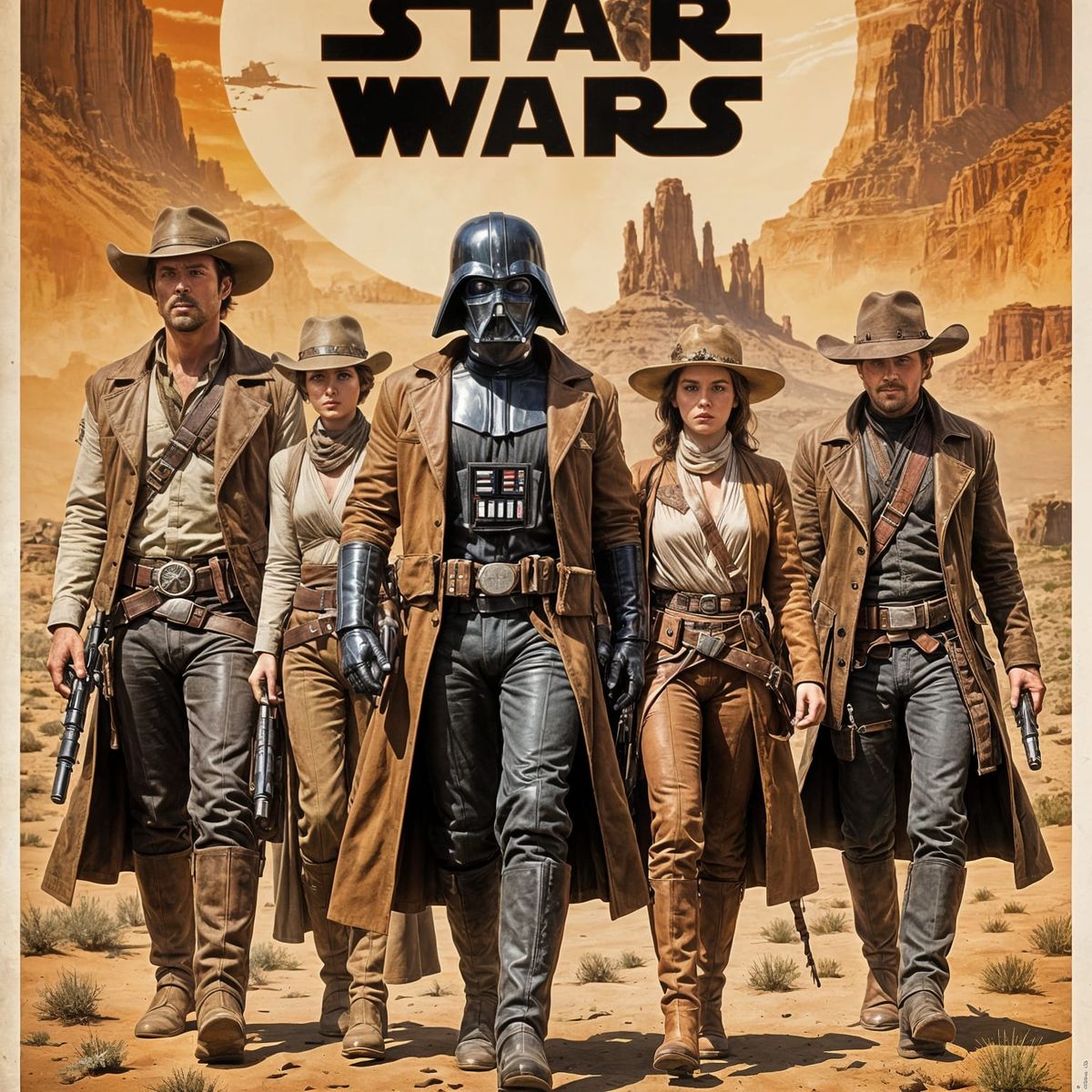 Design unique Star Wars characters in a western setting. Free and easy AI image generation awaits!