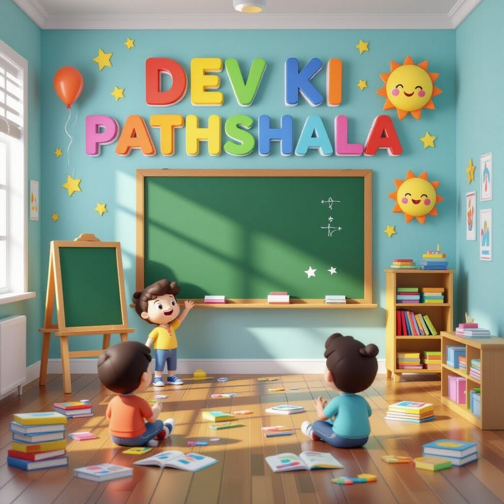 This image showcases a vibrant, cheerful 3D cartoon classroom designed for children's educational content. It features a playful setting with learning elements and space for text, ideal for YouTube videos.