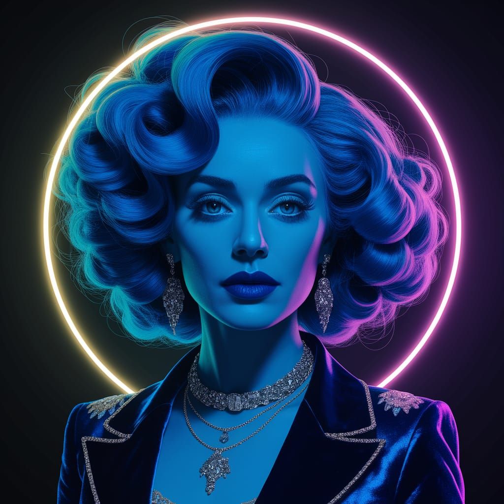 This image showcases a freaky abstract texture with glowing neon cubist elements, rendered in a rich cobalt velvet style.
